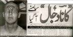 Dan tandanya yg paling ketara sekali ada dua:Pertama: Buta mata kirinya dan kelihatan seperti buah kismis yg kecut, manakala mata kanannya tertonjol keluar kehijau-hijauan berkelip-kelip laksana bintang. Jadi kedua-dua matanya adalah cacat.Kedua: Tertulis didahinya tulisan “Kafir (Kaf-Fa-Ra)”. Tulisan ini dapat dibaca oleh setiap org Islam, sama ada ia pandai membaca atau tidak. Mengikut hadis riwayat At-Thabrani, kedua-dua tanda ini menjelma dalam diri Dajjal setelah ia mengaku sebagai Tuhan. Adapun sebelum itu, kedua-dua tandayg terakhir ini belum ada pada dirinya.